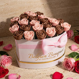 Experience the unparalleled elegance of Belgian Bouquets®, exclusively at Chocolate.com. From the sophisticated keepsake box to the exquisite presentation, every solid Belgian chocolate rose is individually wrapped for a truly indulgent touch. Each handmade bouquet is a masterpiece of taste and beauty, meticulously crafted by artisan chocolatiers to create a luxurious gifting experience.