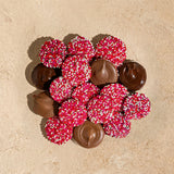 Valentine’s Day Belgian Chocolate Nonpareil Drops 5 oz: Milk Chocolate (Sugar, Cocoa Butter, Whole Milk Powder, Cocoa Mass, Soy Lecithin (An Emulsifier), Natural Vanilla Flavouring), Dark Chocolate (Cocoa Mass, Sugar, Cocoa Butter, Soy Lecithin (An Emulsifier), Natural Vanilla), White Nonpareils (Sugar, Corn Starch, Confectioner's Glaze, Carnauba Wax), Pink Nonpareils (Sugar, Corn Starch, Confectioner's Glaze, Red 3, Carnauba Wax), Red Nonpareils (Sugar, Corn Starch, Confectioner's Glaze, Red 3, Red 40, Carnauba Wax, Yellow 6, Blue 2)